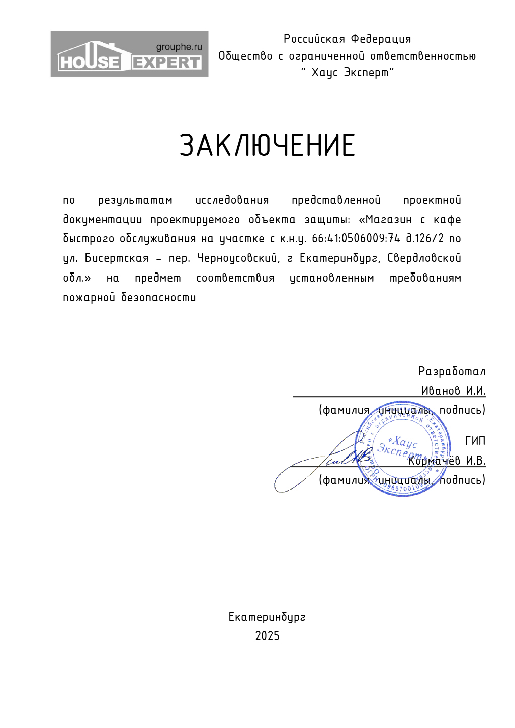Заключение о соответствии объекта требованиям пожарной безопасности - Титульный лист 2Титульный лист 2